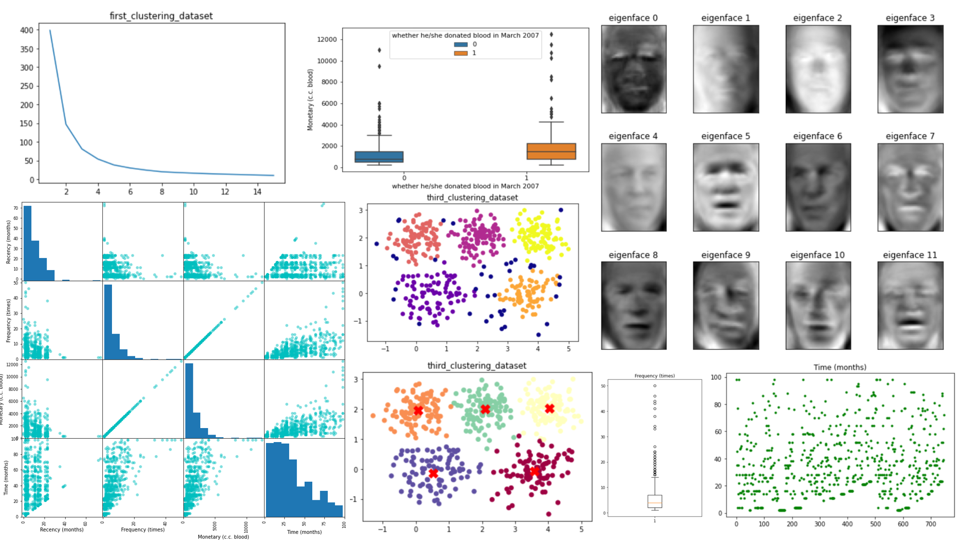These projects cover diverse data analysis, machine learning, and practical applications, including blood donation analysis, maternal health risk prediction, speech disorder classification, facial recognition, and clustering analysis.
